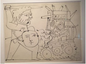 Picasso- Dessin à la plume / XXe siècle. « La paix combattant le char de la guerre » |